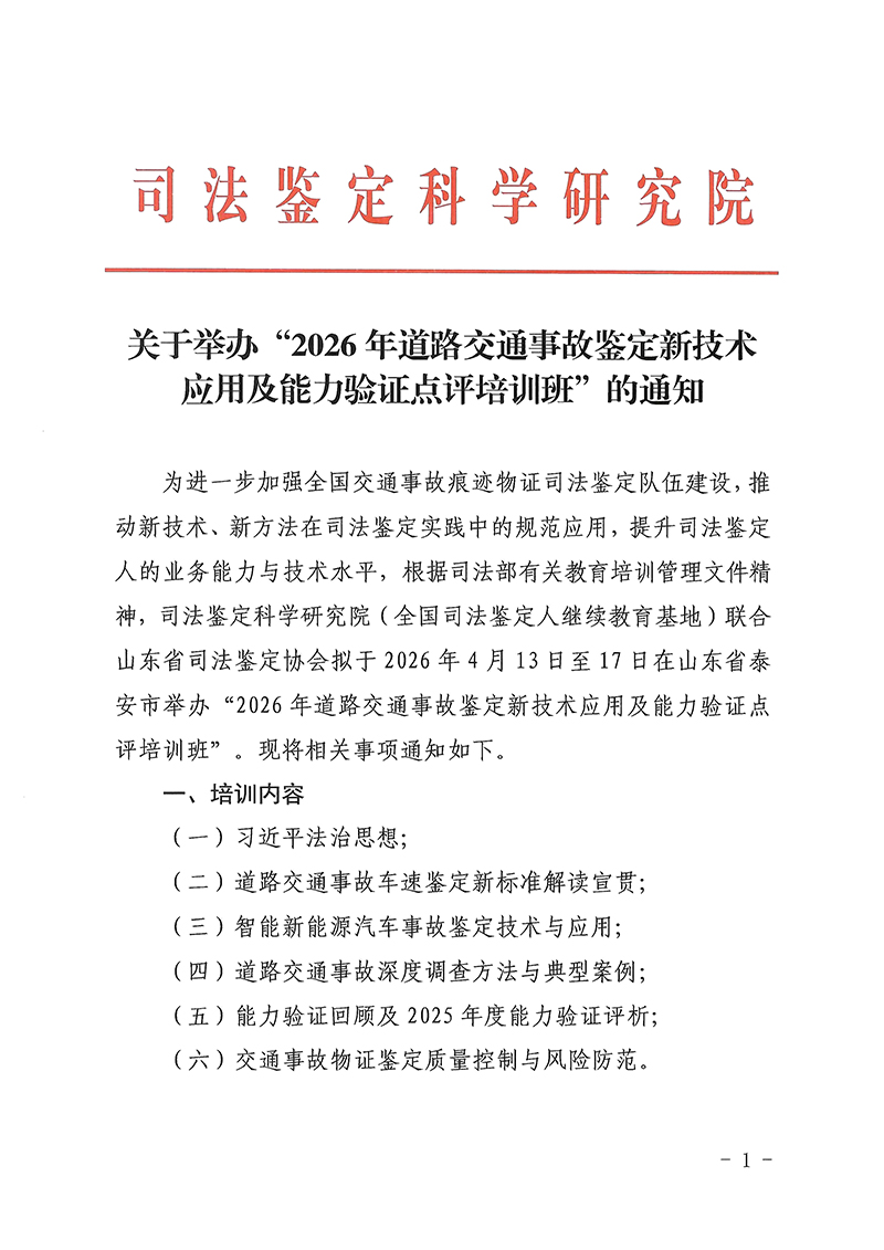 关于举办“2026年道路交通事故鉴定新技术应用及能力验证点评培训班”的通知