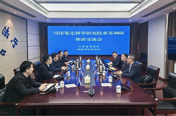在江苏省司法厅,二级巡视员郭兵和省司法鉴定协会负责同志等与调研组一行座谈交流。双方围绕司法鉴定机构登记管理、高水平司法鉴定机构建设、司法鉴定科技创新和成果转化、教育培训等内容充分交流,一致认为需发挥各自优势,强化多领域、多场景合作,共同推动长三角司法鉴定一体化建设。